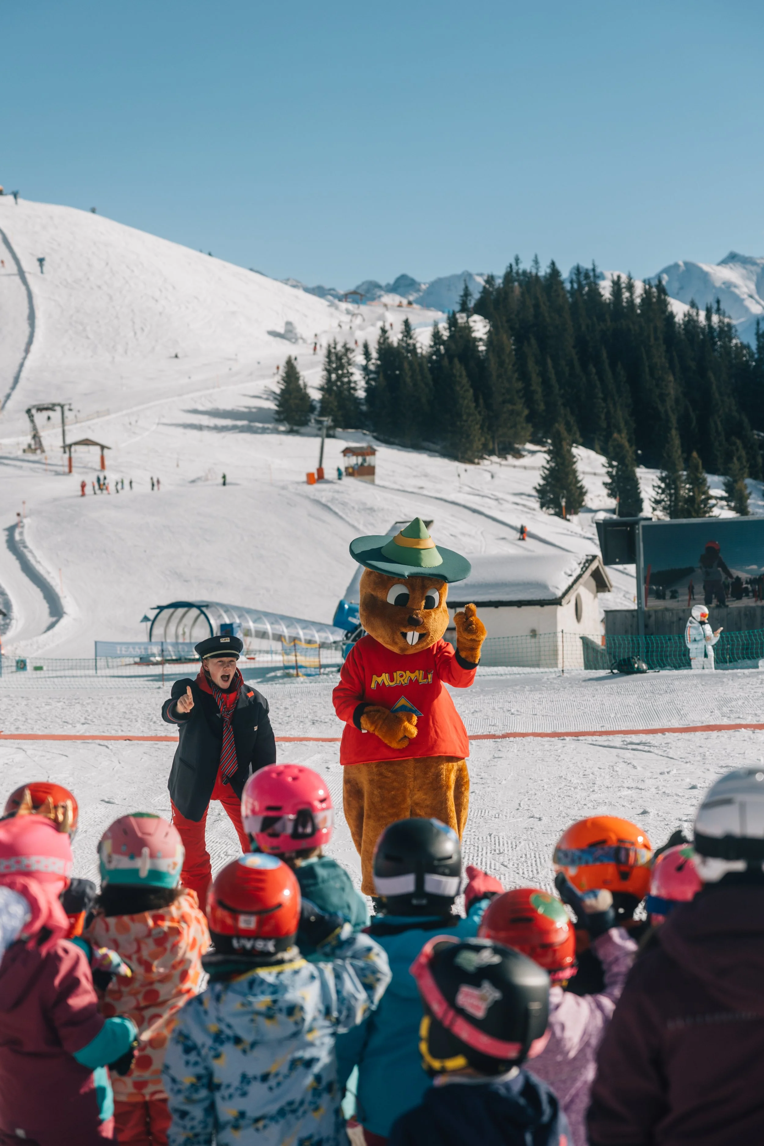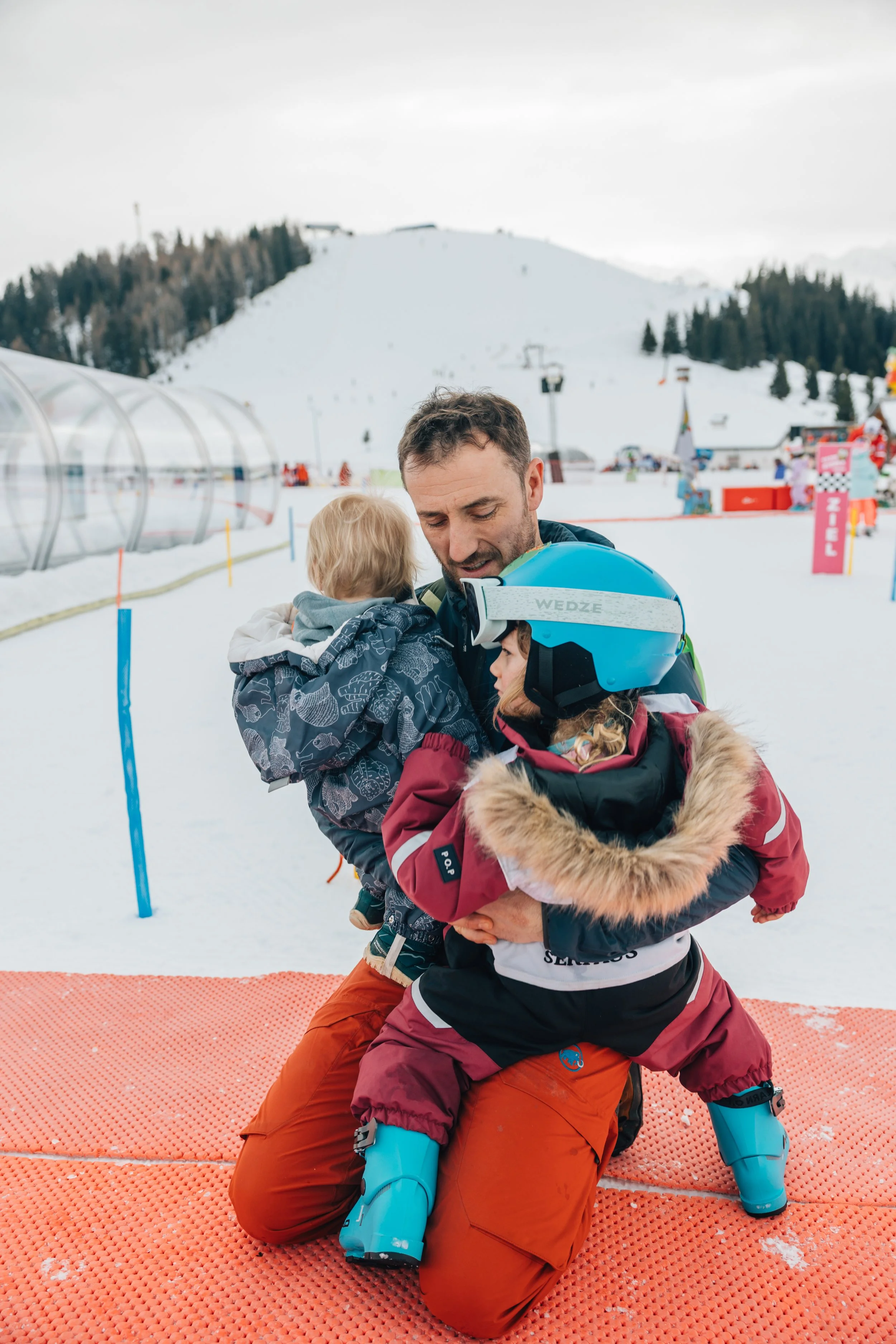 Murmli, the resort mascot, appears daily in the children’s ski area with sweets, hugs and a full dance party. It quickly became one of the highlights of our daughter’s entire holiday. Honestly, this kind of thoughtful detail makes a huge difference. Skiing becomes fun and playful rather than overwhelming — especially for preschoolers.