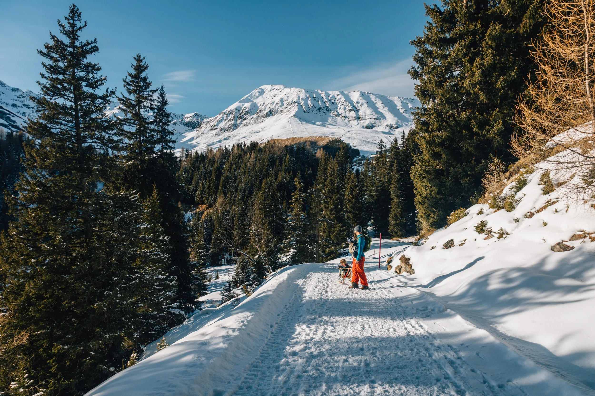 Winter hiking trails perfect for little legs — we highly recommend hiking the Six Senses trail from the Komperdellbahn to Hög Alm for a delicious, traditional lunch in a spectacular setting. It was only around 2km each way so perfect for a morning or afternoon as a break from skiing! We hired a toboggan to pull the kids which they loved.